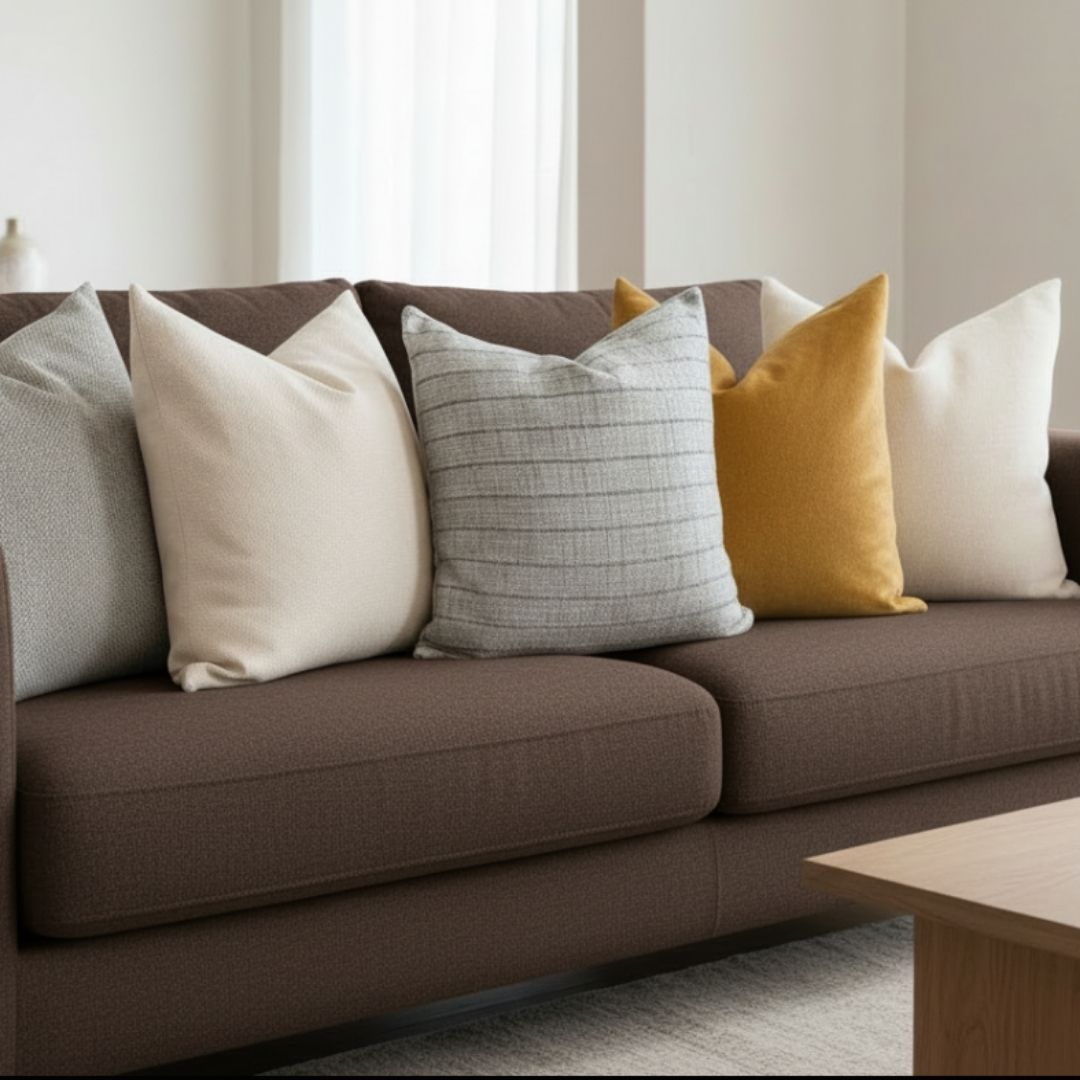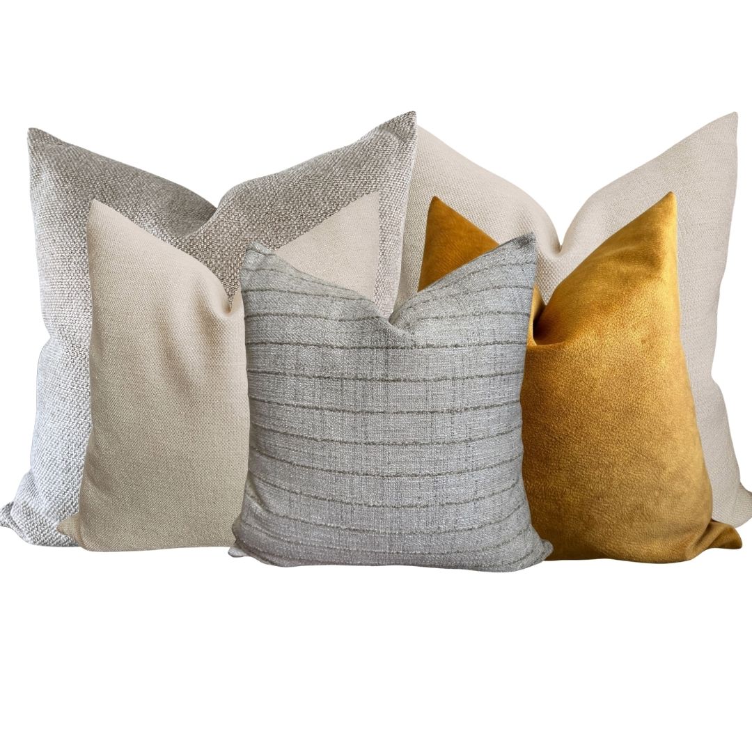 Este set de 5 cojines (45x45 cm) fue creado por interioristas para dar profundidad, textura y sofisticación a tus espacios.